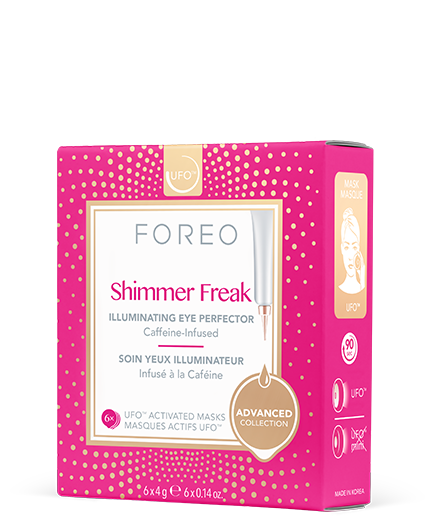 Forget your morning coffee, this caffeine-infused microfiber mask is just what you need to banish signs of fatigue in just 90 seconds. Formulated with fine light-reflecting particles, Shimmer Freak instantly diminishes the look of dark circles while UFO’s signature Cryo-Therapy refreshes the delicate skin around the eye contour and awakens tired eyes.