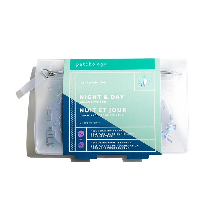 Night & Day Miracle Eye Duo Kit includes: FlashPatch® Rejuvenating Eye Gels caffeine: improves micro-circulation for brighter tone and reduced puffiness sodium hyaluronate: naturally binds moisture to the skin centella asiatica: encourages collagen synthesis while inhibiting skin inflammation hydrolyzed collagen: improves skin hydration, elasticity, tone and density portulaca oleracea extract: brightens the under eye ingredients FlashPatch® Restoring Night Eye Gels retinol: helps speed cell healthy turnover squalane: naturally hydrates, softens, and protects from free radicals cedrus atlantica bark: brightens and reduces dark circles peptides: reduce fine lines and crow's feet