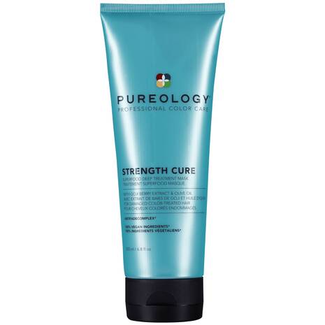 Pureology Strength Cure Superfood Treatment repairs and strenghtens damaged, color-treated hair with key ingredients Olive Oil and Goji Berry and a signature aromatherapy blend of Mandarin, Peony, and Jasmine.
